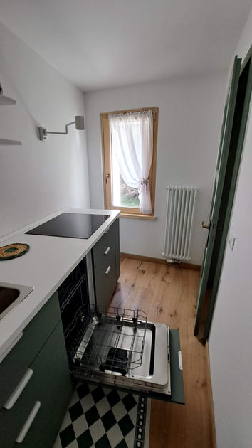 We first fell in love with Sottoguda and then renovated Number 59. The ground floor is dedicated to Civetta Apartment. In the basement, there are common areas, including a tool shed for storing skis and boots, and a relaxation room with a sauna, foot bath, and hot tub.